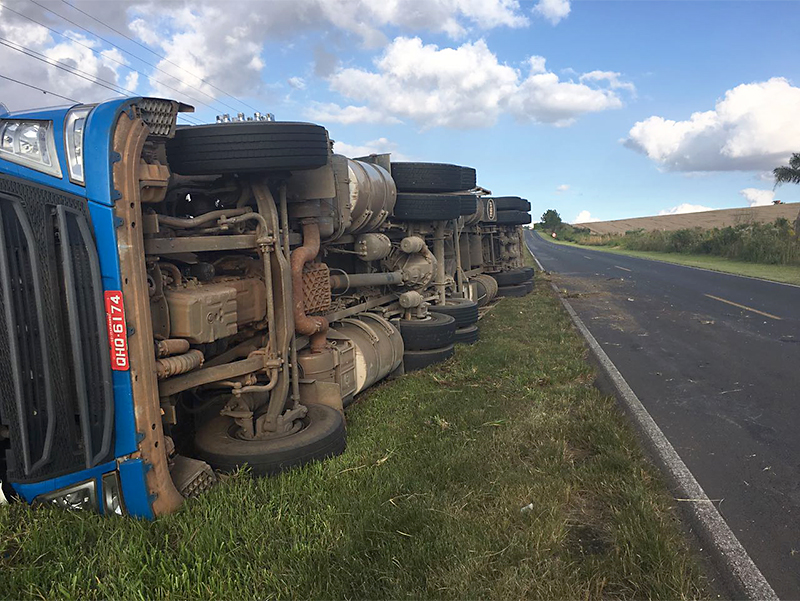 O caminhão Volvo, placas QHQ 6174 de Itapiranga/SC que era dirigido por Renato Borba, de 39 anos e estava carregado de suínos. O motorista não se feriu e como não precisou de atendimento médico foi liberado no local. Segundo informações até a noite de sexta-feira, o caminhão ainda estava no local e a carga estava sendo transferida para outro caminhão, o que ocasionou lentidão na pista naquele trecho.