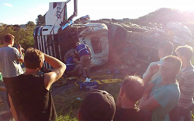 O Corpo de Bombeiros de Palmeira foi acionado para atender ao acidente, uma vez que o motorista O.R. de 67 anos que dirigia a carreta Scania ficou nas ferragens, ele foi retirado com ferimentos moderados, sendo encaminhado ao Hospital Santa Casa de Palmeira. Já, o motorista A.Z., de 50 anos, que dirigia o Ford Cargo saiu ileso do acidente.