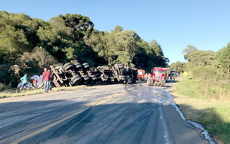 O trânsito ficou parcialmente interditado por várias horas, e até totalmente para que os caminhões fossem retirados do local, formando grandes filas nos dois sentidos da rodovia, e também para que pudesse ser feito a limpeza da pista, uma vez houve vazamento de óleo da carreta que tombou. A Polícia Rodoviária Estadual (PRE) de São Mateus do Sul, também atendeu o acidente e orientou os motoristas no local.