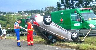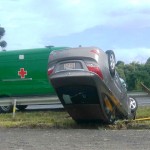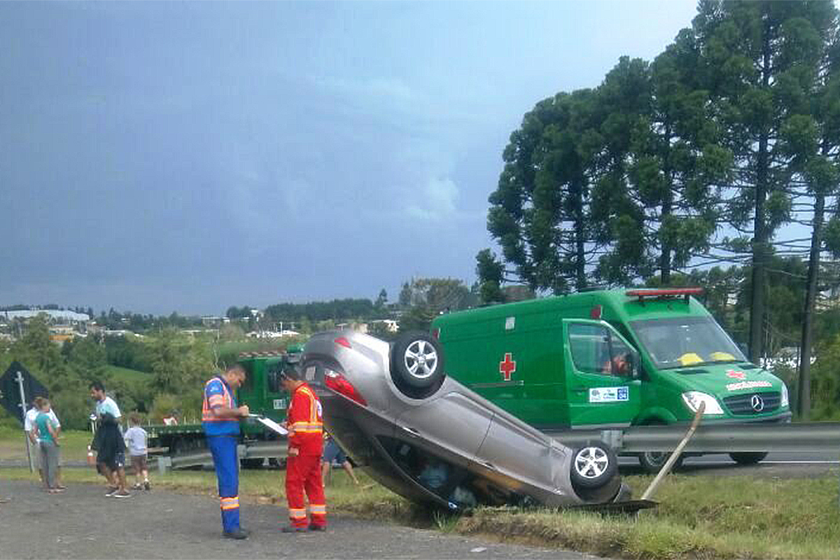 No final da tarde de domingo (22) por volta das 17 horas um automóvel marca Hyundai – modelo Accent que tinha placas do Paraguay acabou capotando na BR 277, próximo ao local conhecido como Roda Verde, entre os bairros do Rocio 1 e 2 em Palmeira.