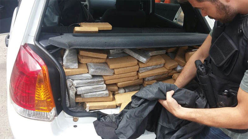 A equipe realizava diligências de rotina na região, quando abordou o veículo. Parte da droga estava dentro das mochilas dos suspeitos e parte estava embaixo dos bancos traseiros e dianteiros do carro, além do porta-malas do veículo. A droga foi avaliada em R$ 225 mil, cada quilo era revendido, em média, por R$1 mil.