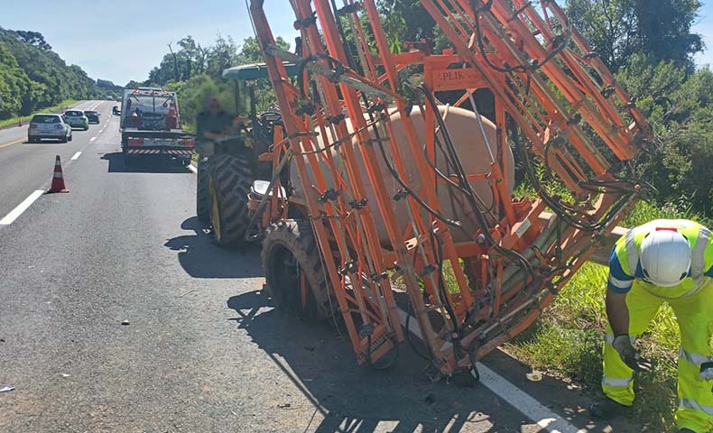 Na tarde desta segunda-feira (25), por volta das 14h, um acidente de trânsito foi registrado no km 199,7 da BR-277, em Palmeira. O caso envolveu uma colisão traseira seguida de saída de pista, com dois veículos envolvidos: uma Chevrolet Spin, com placas de Curitiba, e um trator agrícola John Deere.