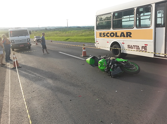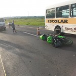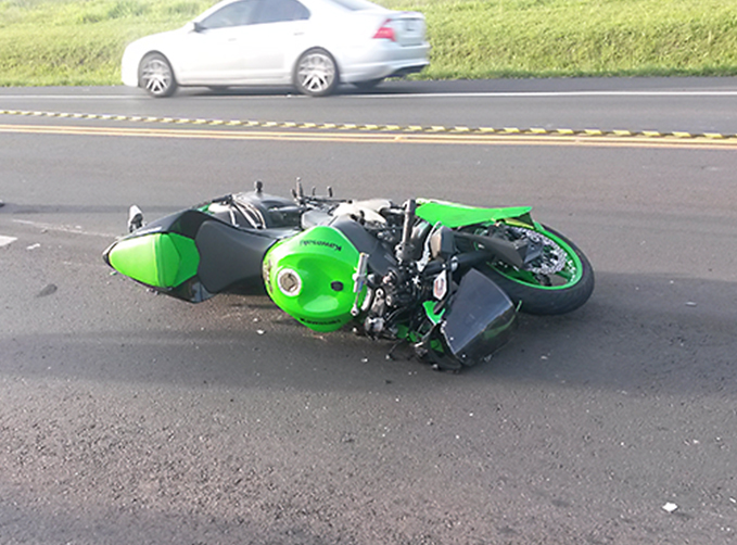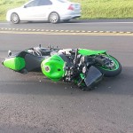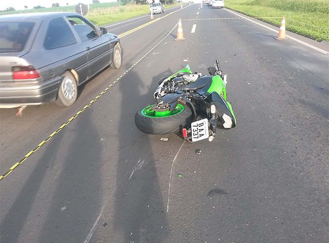 Um acidente entre uma moto e uma caminhonete aconteceu no final da tarde de domingo (15) na BR 277 em Palmeira. A motocicleta marca Kawasaki, modelo Ninja ZX 10R, placas BAA 7337 de São José dos Pinhais, dirigida por Tiago Binkowski colidiu contra a traseira de uma caminhonete modelo Amarok, com placas AA186HY da Argentina, dirigida por Noel Carlos.