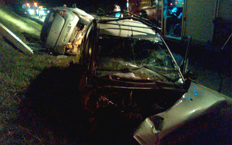 Na noite da última segunda-feira (29), por volta das 20h45, a equipe do Corpo de Bombeiros se deslocou até a BR-277 no Km 174 no local conhecido como “Vaca Morta” para atender a um acidente de trânsito tipo colisão frontal, que deixou dois motoristas com ferimentos graves. A princípio João Pedro Pereira Dallavale de 22 anos que dirigia um veículo Renault Sandero de cor prata, com placas AWP 9640 de Curitiba-PR transitava no sentido Palmeira, enquanto Charles Rodrigo Feliciano de 36 anos do Ford Fiesta Sedan também de cor prata, com placas BEZ 0877 de Almirante Tamandaré, transitava no sentido Irati, quando aconteceu a colisão frontal.