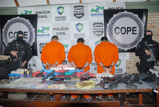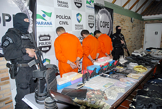 O delegado Rodrigo Brown deu uma entrevista em coletiva de imprensa no Cope com a presença do Secretário de Segurança, Wagner Mesquita. Três presos foram apresentados, eles são suspeitos de explodirem caixas eletrônicos, no Paraná e Santa Catarina. De acordo com a Polícia os suspeitos estavam com destino ao interior do Estado com o objetivo de explodir mais um banco.