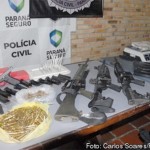 As equipes do COPE (Centro de Operações Especiais) com o apoio da Polícia Rodoviária Federal (PRF), conseguiram prender na tarde da quinta-feira (3), alguns suspeitos e apreenderam dinamites e armas pesadas. A primeira abordagem foi em frente ao Posto da PRF na BR 277 em São Luís do Purunã, município de Balsa Nova. Um veículo Ford Fiesta foi abordado e acabaram sendo presos dois suspeitos e apreendidas bananas de dinamites e três fuzis. Já uma camionete Hilux, placas NJF-4185, conseguiu furar o bloqueio e fugir pela rodovia sentido interior do estado. Mas na continuidade do serviço, a Hilux foi abordada no Posto da PRF de Furnas na BR – 376.