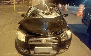 No último domingo (30), por volta das 18 horas, a equipe do Corpo de Bombeiros de Palmeira se deslocou até o Km 171 na BR-277, próximo à entrada do Quartel para atender a um acidente de trânsito, tipo colisão de um automóvel contra um cavalo. Além dos bombeiros, a equipe a Polícia Rodoviária Federal (PRF) também prestou atendimento ao acidente. Segundo informações, o veículo Siena de cor preta com placas MHS 9459 de Curitiba-PR, se deslocava do interior para a capital quando um cavalo invadiu a faixa de rolamento de forma repentina ocasionando a colisão do veículo contra o animal que acabou morrendo no local. Após a colisão o carro rodou na pista e ficou imobilizado sobre a faixa de rolamento.