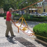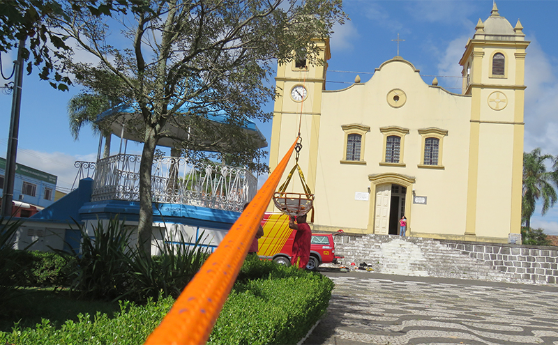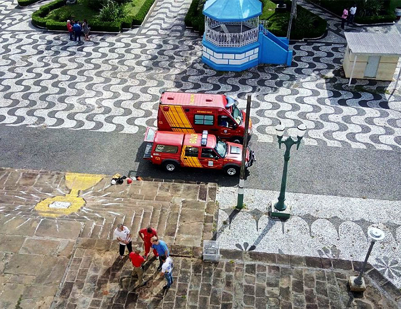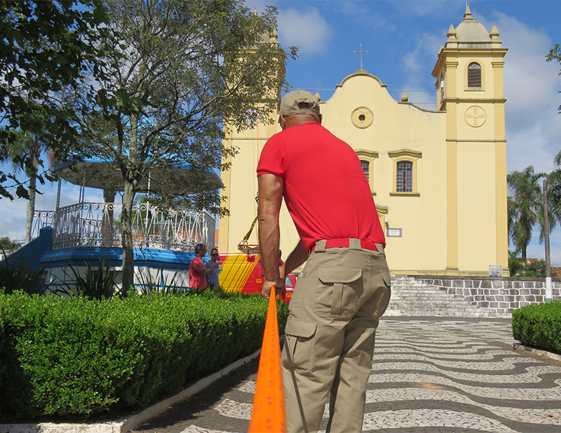 O treinamento realizado pelos bombeiros foi através de uma corda amarrada no poste central da praça e na torre da igreja e uma maca vazia deslizou até chegar ao solo. Segundo os bombeiros, o treinamento serve para apresentação que será executada no dia 7 de abril, logo após o Ato Cívico na Praça.