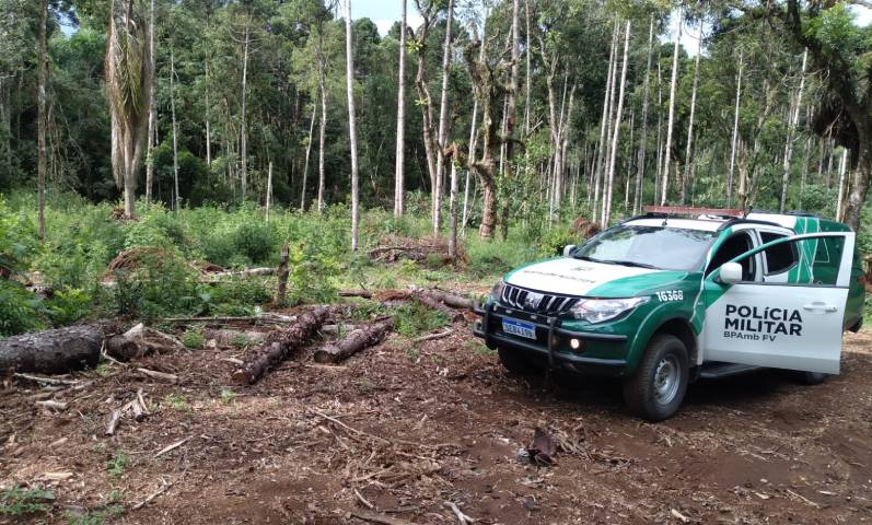 Uma área de floresta nativa foi embargada após a constatação de corte ilegal de árvores de araucária em uma propriedade rural na comunidade de Rio das Pedras, no município de São Mateus do Sul.