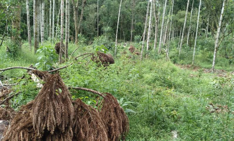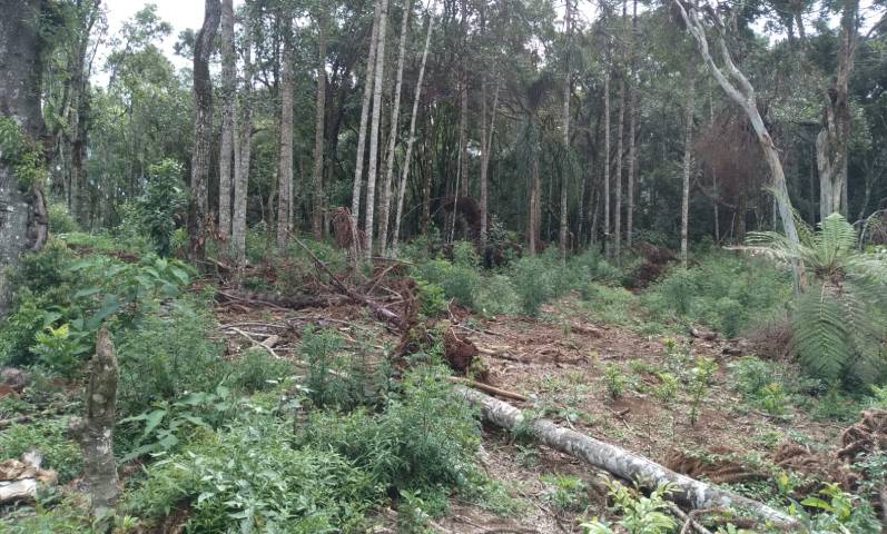 Segundo a equipe, houve o corte de exemplares de pinheiro-araucária (Araucaria angustifolia), espécie considerada ameaçada de extinção e protegida pela legislação ambiental.