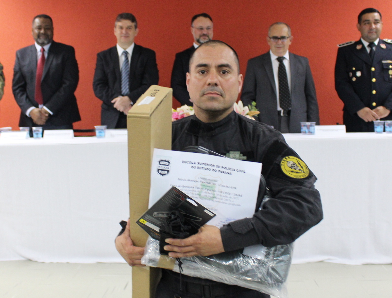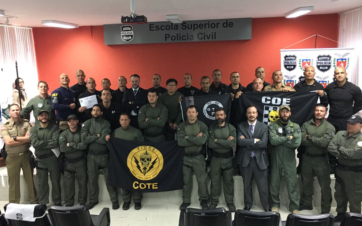 Na manhã da segunda-feira (10), durante solenidade, na Escola Superior de Polícia Civil, na Vila Izabel, em Curitiba se formaram 16 alunos do curso de Operações Táticas Especiais (Cote) VII, do Tático Integrados de Grupos de Repressão Especial (Tigre), grupo de elite da Polícia Civil. O evento contou com a presença do secretário de Segurança Pública e Administração Penitenciária, Wagner Mesquita e do delegado-geral da Polícia Civil, Júlio Cezar dos Reis.