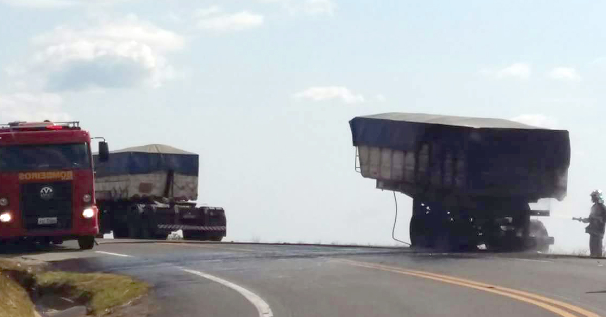 Segundo informações, o caminhão dirigido por Bruno Henrique Gomes trafegava pela PR 427 e na subida acabou apresentando fogo no rodado traseiro da última carreta que era tracionada pelo caminhão. A carreta que pegou fogo é da marca e modelo Sr/Pastre, placas CSK 3189 de Tamarana/PR.