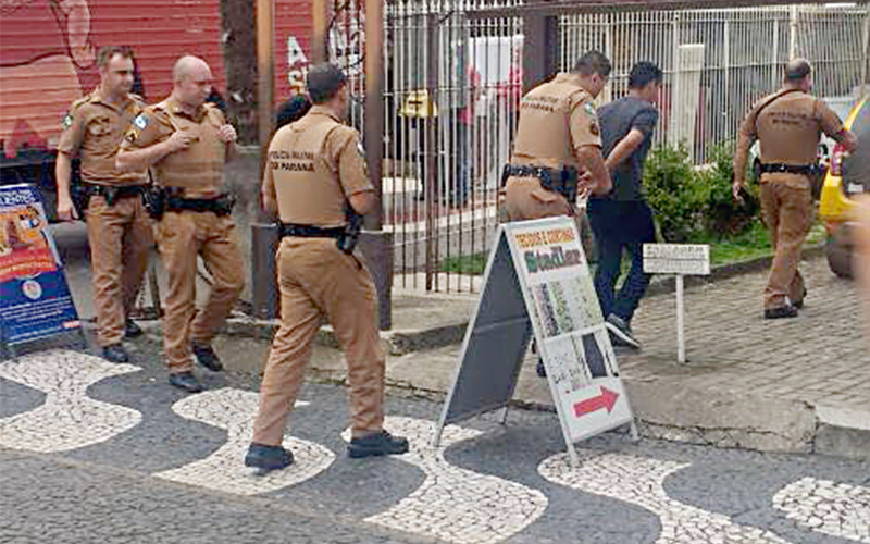 Em busca pessoal realizada no indivíduo, nenhuma arma foi localizada com ele. Tendo ele sido indagado sobre o que pretendia fazer e também com informações dos funcionários da loja, ele confessou que tentava aplicar um golpe realizando uma compra com talão de cheques em seu nome, porém com documentos falsos. O elemento foi identificado e preso pelos policiais.