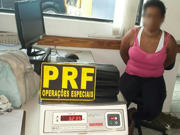 A Polícia Rodoviária Federal (PRF) prendeu no fim da tarde de terça-feira (6), em frente ao posto policial de São Luiz do Purunã, uma mulher de 21 anos de idade que transportava 3,2 kg de crack.
