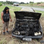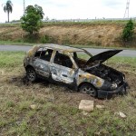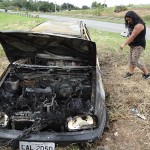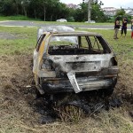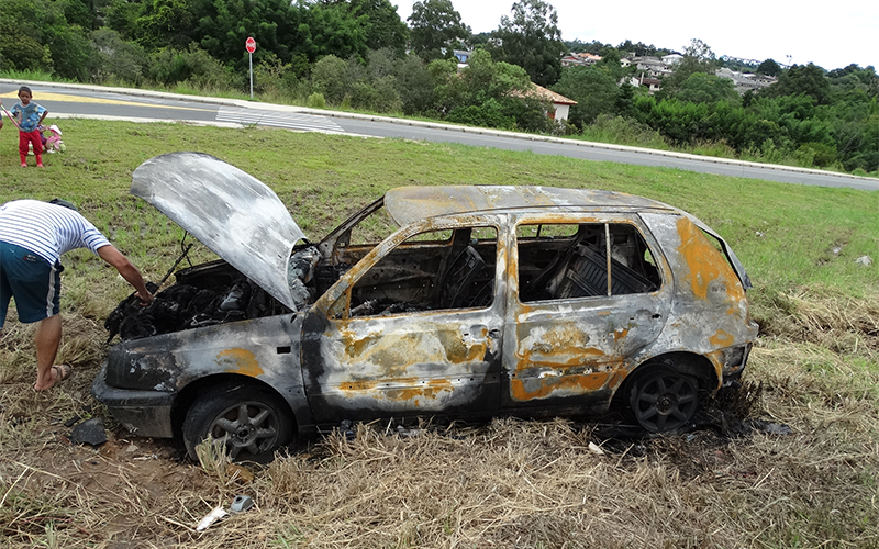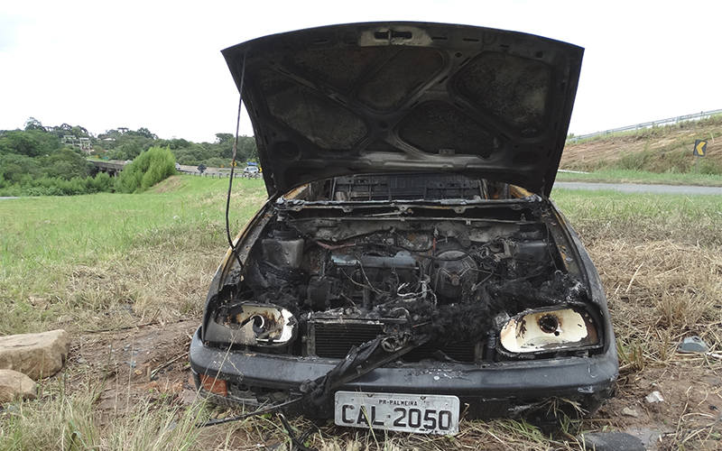 A cena de um veículo totalmente queimado às margens da rodovia PR 151 em Palmeira, ao lado da nova rotatória que liga a Rua Jesuíno Marcondes e os bairros Vila Monjolo e Vila Rosa chamou a atenção durante toda esta segunda-feira.