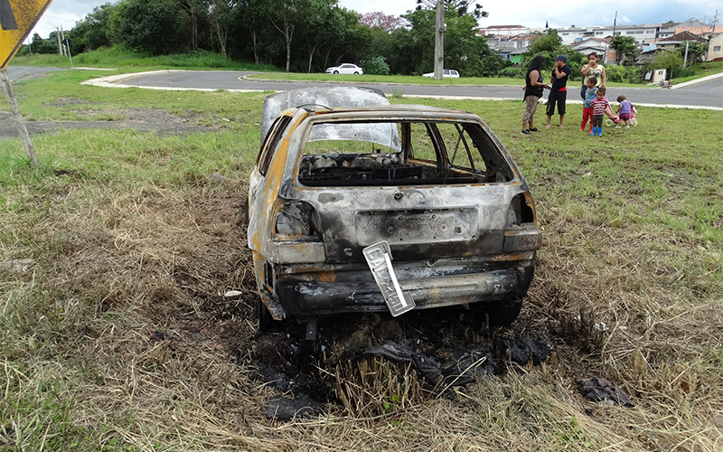 Um veículo Golf de cor preta, com placas CAL 2050 de Palmeira, de propriedade de Vilmar Martins da Silva, e que segundo Edineia Narchett, esposa de Vilmar, foi furtado da garagem da casa da família no bairro Vila Monjolo onde moram a mais de 4 anos, e que fica uns 500 metros de distância do local de onde carro foi levado e em seguida incendiado.