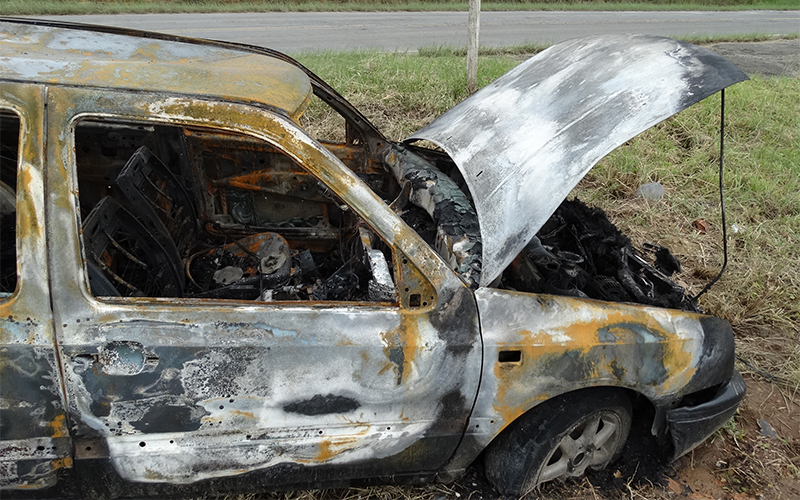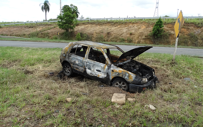Família teve o carro furtado da garagem e incendiado às margens da PR 151