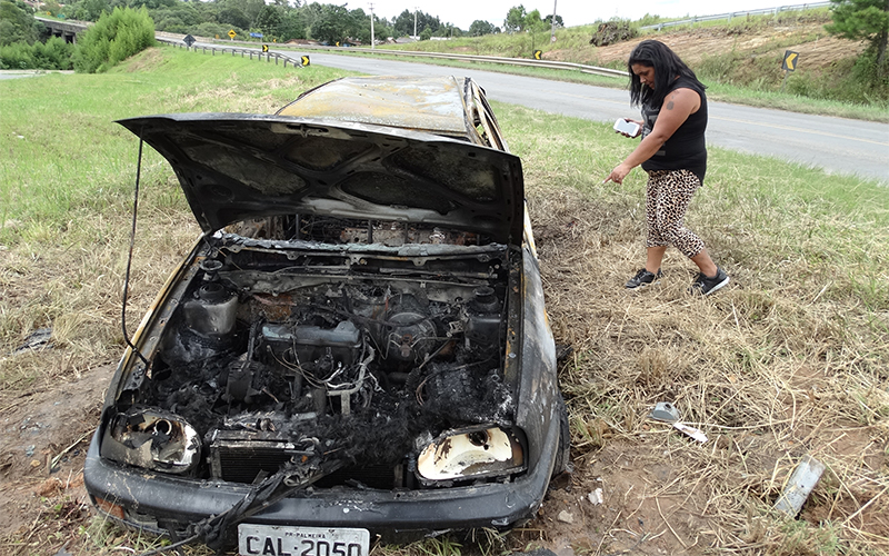 Segundo ela, a família sentiu falta do veículo por volta das 10 horas da manhã, quando saíram perguntando se alguém sabia ou tinha visto o carro, quando uma pessoa falou que havia um carro queimado às margens da PR 151.