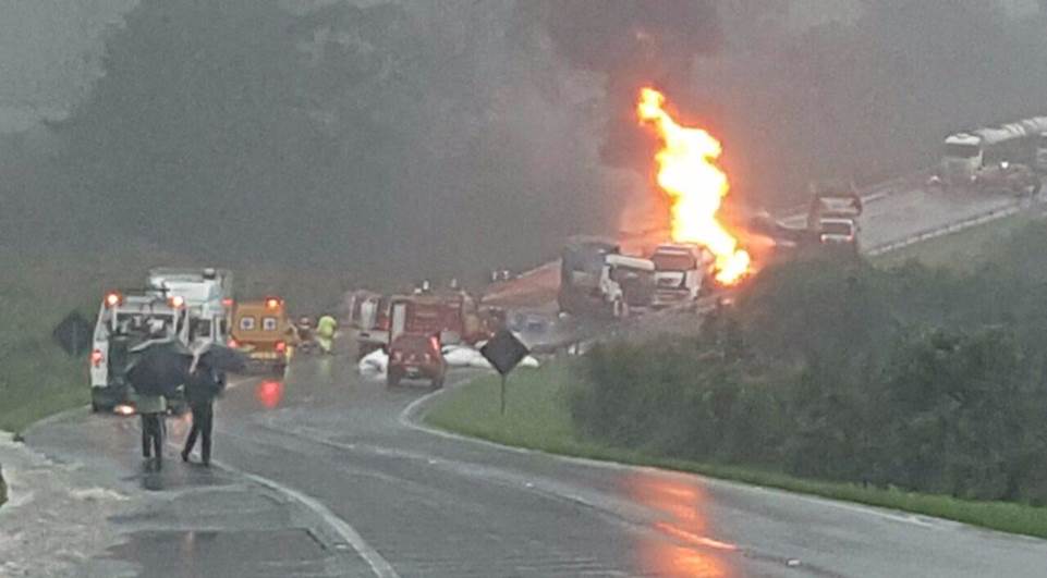 O engavetamento foi registrado no KM 137, na pista no sentido Ponta Grossa, próximo à balança de pesagem de caminhões em Balsa Nova, a três quilômetros da Praça de Pedágio. De acordo com as primeiras informações, um dos veículos envolvidos no acidente foi um caminhão tanque carregado com combustível, a PRF informou que 4 caminhões e 6 carros se envolveram na tragédia, mas depois foi confirmado que foram sete caminhões e quatro automóveis sendo um caminhão tanque, carregado com diesel, que explodiu após a colisão.