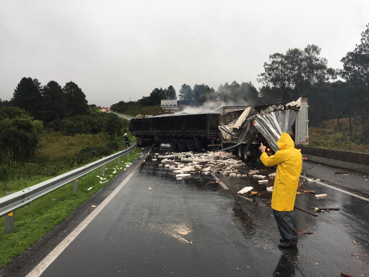 Os dois sentidos da rodovia ficaram bloqueados durante praticamente toda à tarde, sendo liberado primeiro o sentido Sul (Curitiba) e o trânsito sentido Norte (Interior) continuaram bloqueado até por volta de meia noite e meia. A pista permaneceu totalmente bloqueada até a finalização dos trabalhos das equipes da Concessionária, para a retirada dos dois últimos caminhões, causando congestionamento de mais de 10 km, chegando até as proximidades do viaduto de Bateias em Campo Largo.
