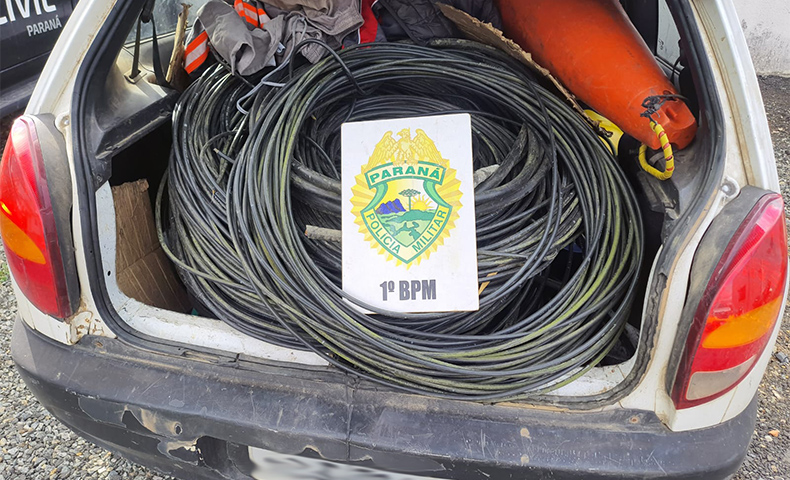 Segundo relato da vítima, um homem estava furtando fios no local. Durante a abordagem, os policiais identificaram um veículo GM Celta onde foram encontrados aproximadamente 100 kg de fiação no porta-malas.