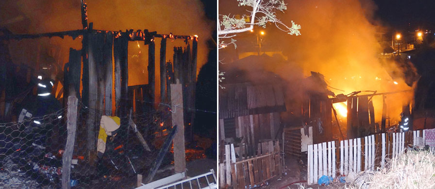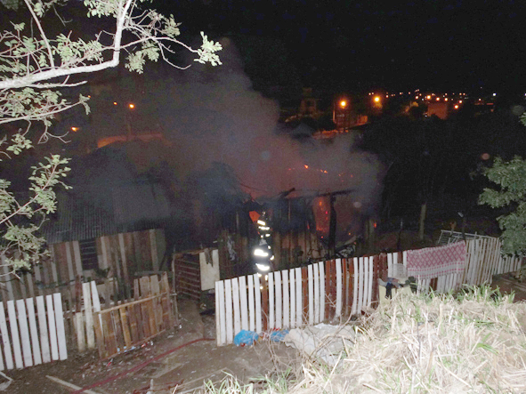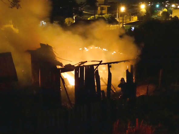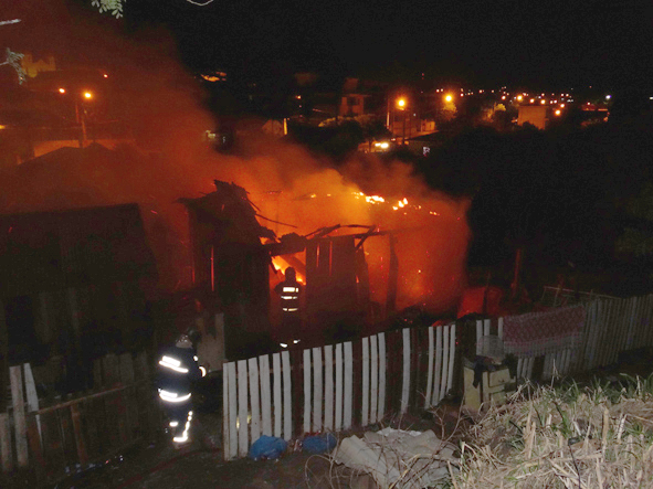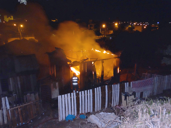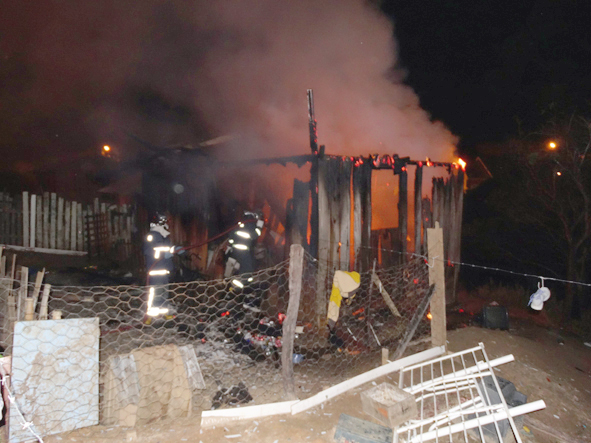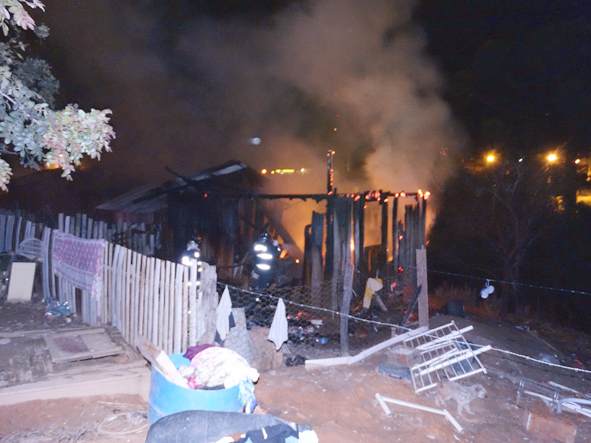 O Corpo de Bombeiros foi acionado na noite de sexta-feira (15), para atender um incêndio em uma residência localizada em área irregular às margens da PR 151, próximo a nova rotatória de acesso à Vila Rosa. Segundo relatos de vizinhos, o proprietário estava embriagado e foi o responsável por atear fogo no local.