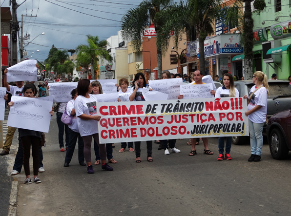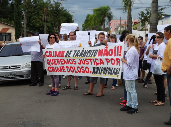 Uma manifestação promovida por familiares e amigos do cabeleireiro Valdecir Ângelo dos Santos, que morreu na tarde do último sábado (1º), após ser atropelado na rua 15 de Novembro, próximo a esquina com avenida 7 de Abril, reuniu cerca de 40 pessoas. A manifestação teve por objetivo pedir que o motorista atropelador, Mário Augusto Przybysky, responda por homicídio doloso, pois entendem que ele teve assumiu o risco de matar ao dirigir em alta velocidade.