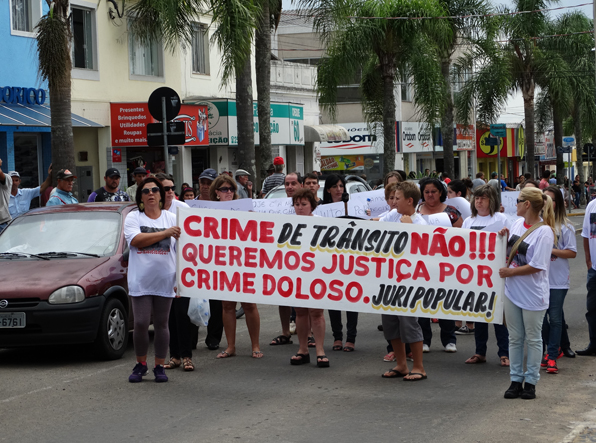 A viúva e a filha de Valdecir seguravam uma faixa que pedia indiciamento do atropelador por crime doloso e julgamento através de júri popular. Outros familiares e também amigos do cabeleireiro portavam cartazes pedindo justiça e punição ao motorista que provocou o acidente e a morte de Valdecir.