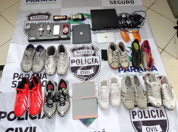 O menor de idade confessou ter furtado vários objetos em uma residência na rua Theobaldo Machado, no bairro São José, no dia 13 de outubro. De acordo com G.F.O., ele pulou o muro da casa e aproveitou o fato de os moradores estarem dormindo para furtar um Iphone 5, um IPad, um Ipad Mini, dois óculos de sol Ray-Ban, um relógio Speedo e um relógio Michael Korns, um DVD Sony Blue-Ray, perfume 212, PlayStation, três tênis Nike Shox e cinco Adidas, uma garrafa de whisky Old Par/Buchanas e perfume Mont Blanc.