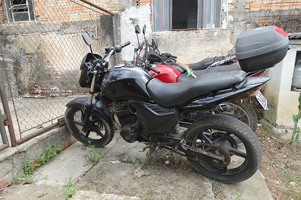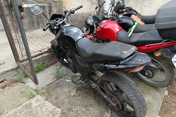 A equipe policial em patrulhamento no bairro Regina Vitória na PR 151 avistou uma motocicleta cor preta e sem placas. Realizada a abordagem, foi identificado o condutor de 20 anos e verificado que a motocicleta estava ainda, com a numeração do chassi “pinado” adulterado, não sendo possível sua identificação. O condutor relatou que havia comprado a motocicleta e que está estava baixada pelo Detran. Diante ao exposto, a motocicleta foi apreendida, sendo encaminhada juntamente com o condutor a delegacia da polícia.