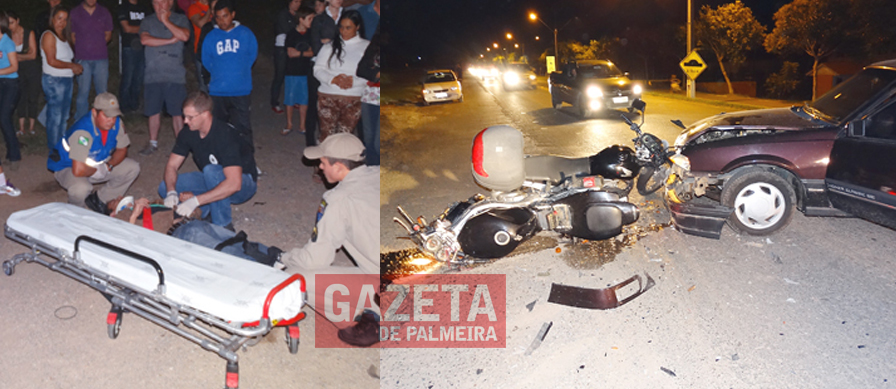 Um motoqueiro ficou gravemente ferido e corre risco de morte após a colisão entre duas motocicletas e um automóvel na PR 151, no acesso à rua Padre Camargo. O motorista do veículo ficou ileso, enquanto o outro motoqueiro sofreu ferimentos leves.