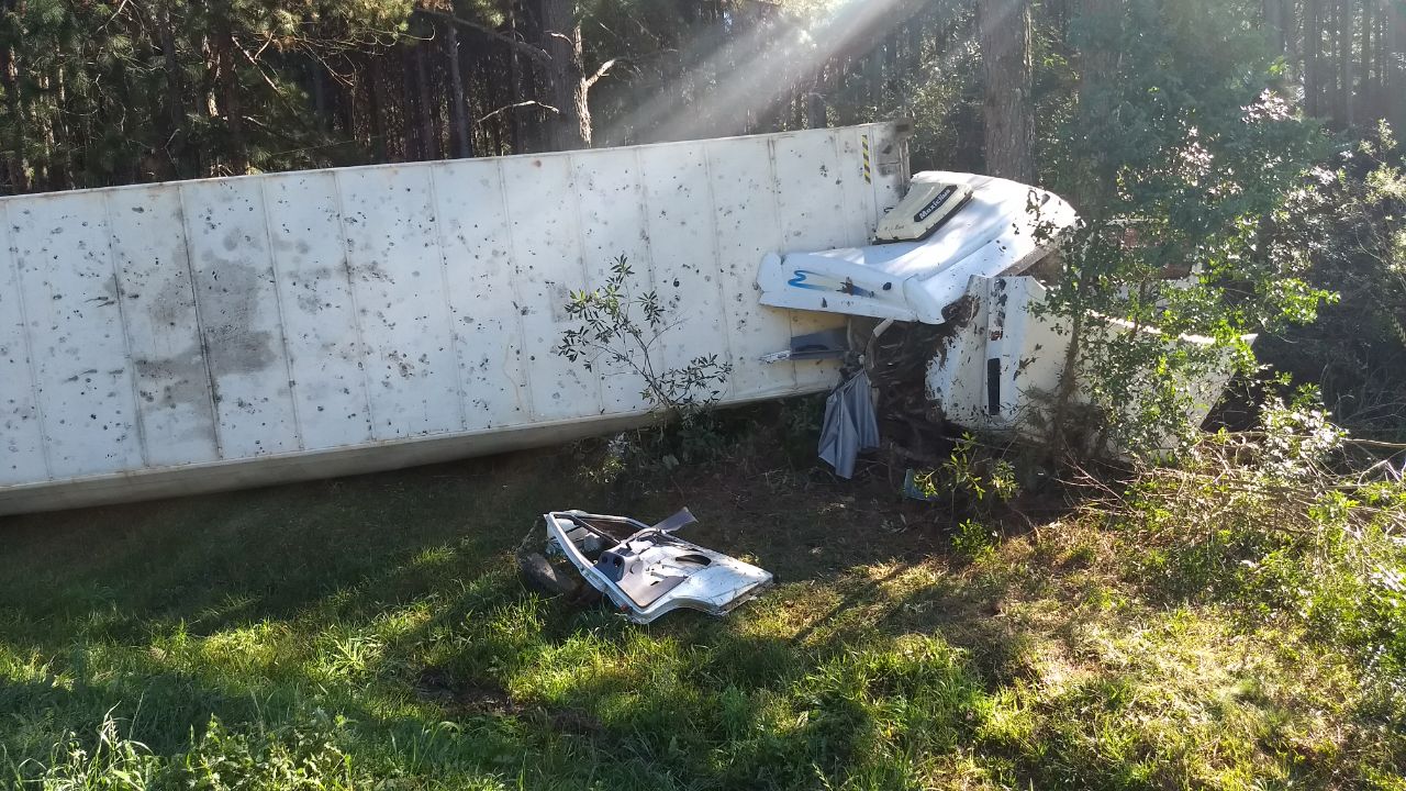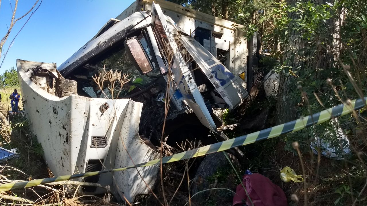 Segundo informações, o caminhoneiro se perdeu sozinho na direção, saiu da pista e caiu num barranco. Com o impacto contra uma árvore, ele morreu esmagado.