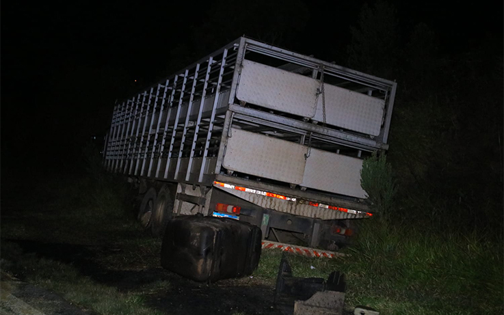 Além do condutor, havia um passageiro de 65 anos na caminhonete, que sofreu uma fratura no braço. O motorista do caminhão de suínos não ficou ferido no acidente.