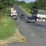 Na tarde de segunda-feira (08), no Km 153 da BR 277 em Porto Amazonas, ocorreu um acidente do tipo saída de pista envolvendo um veículo caminhão betoneira com placas de Chapecó/SC.