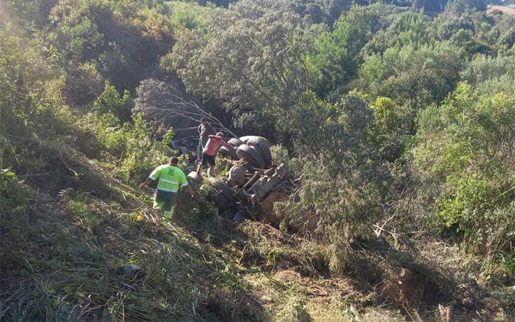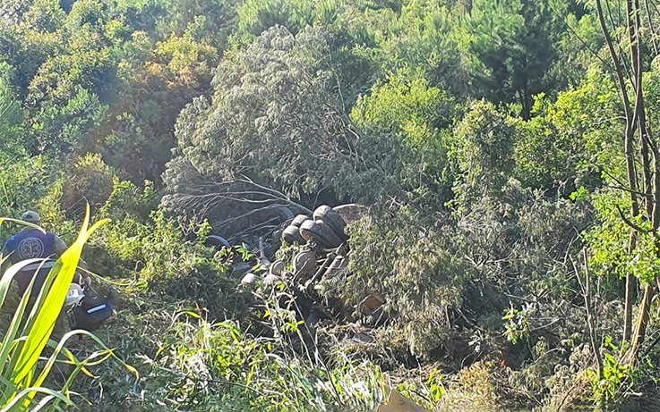 O veículo Volvo modelo VM270 seguia no sentido Palmeira quando o condutor perdeu o controle e acabou caindo em uma ribanceira à margem da pista.