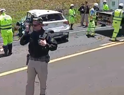 Os veículos envolvidos foram um BYD cinza com placas de Guarapuava (PR), um Fiat Argo branco de Cotia (SP) e uma Toyota Hilux branca de Curitiba (PR).