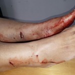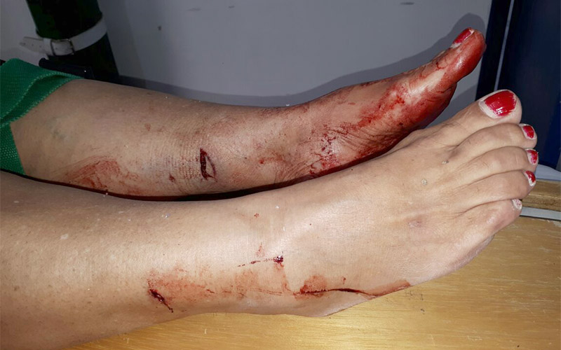 A mulher bastante assustada e muito nervosa teve ferimentos contusos nas duas pernas e bastante sangramento, ela teria relatado aos socorristas que é diabética e por conta disso sua maior preocupação.