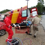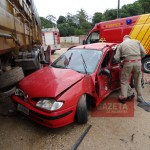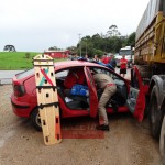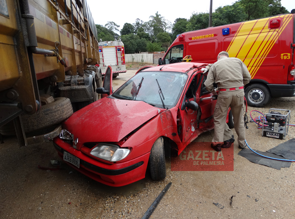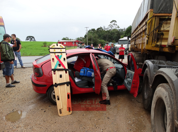 Edileia Rosa Ferreira, de 32 anos, sofreu ferimentos no pé, braço e costas, e foi encaminhada para atendimento médico pelo Corpo de Bombeiros de Palmeira. Ela conduzia um Megane, cor vermelha, placas ARZ-7770, de Ponta Grossa.