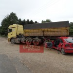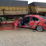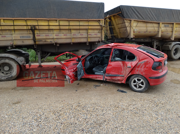 Mulher fica ferida após colisão entre carro e caminhão na PR 151