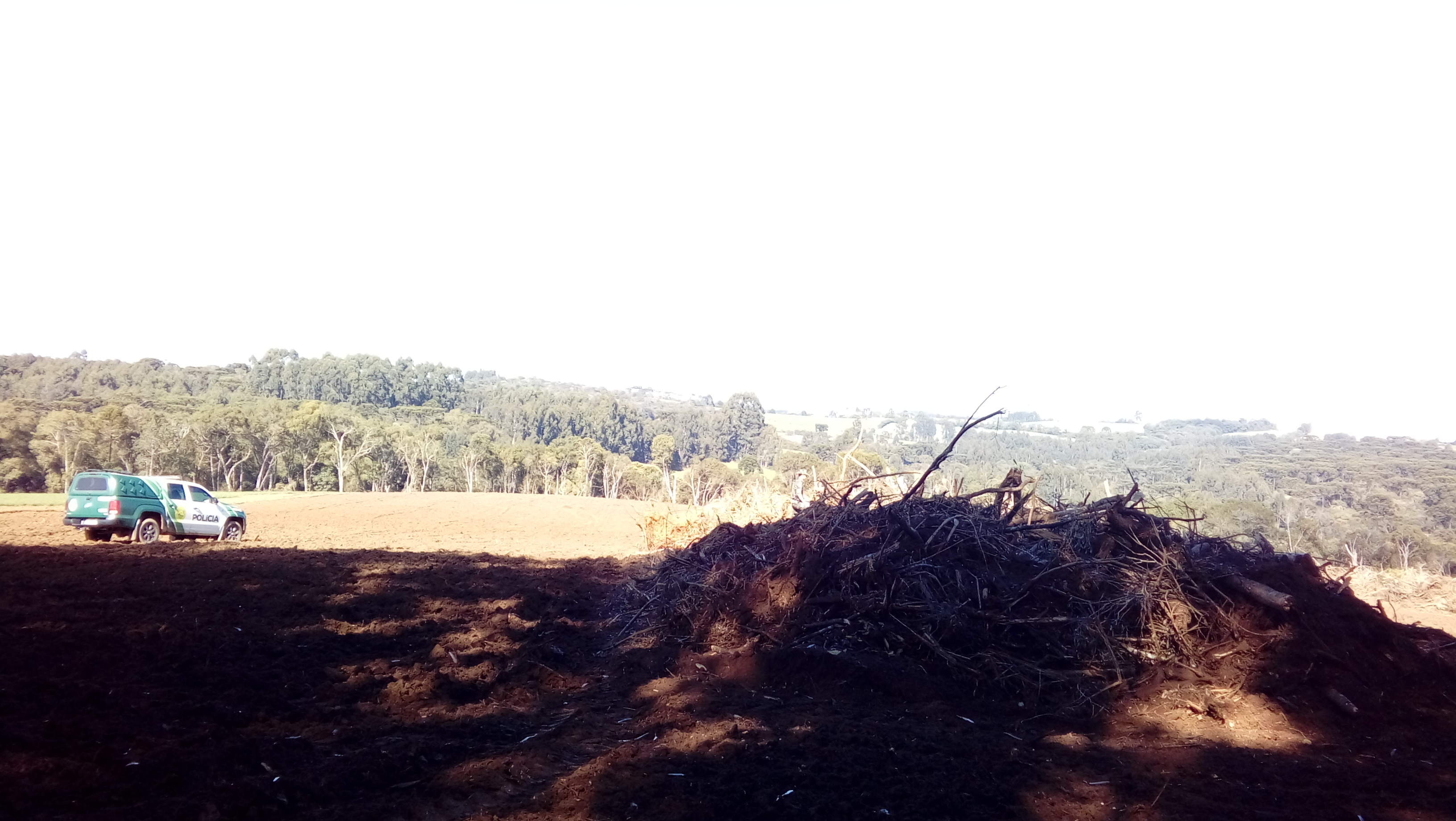 A equipe da Polícia Ambiental esteve no último sábado (24) desde o início da manhã em Palmeira em atendimento a seis denúncias e apenas dois não foram constatadas. Na primeira em atendimento a denúncias de desmatamento ilegal em propriedade rural na localidade de Queimadas. A equipe policial realizou vistoria na propriedade e constatou a destruição de floresta secundária em estágio avançado de regeneração do bioma mata atlântica, em área correspondente a 2,6 hectares, atingindo espécies ameaçadas de extinção, pinheiro (araucária angustifólia) e imbuia (ocotea porosa), na categoria “vulnerável”, sendo que o responsável não foi encontrado, porém foi lavrada uma notificação para comparecimento no Posto de Polícia Ambiental de Vila Velha em data posterior, para apresentação de documentos e prestar esclarecimentos sobre o dano ambiental.