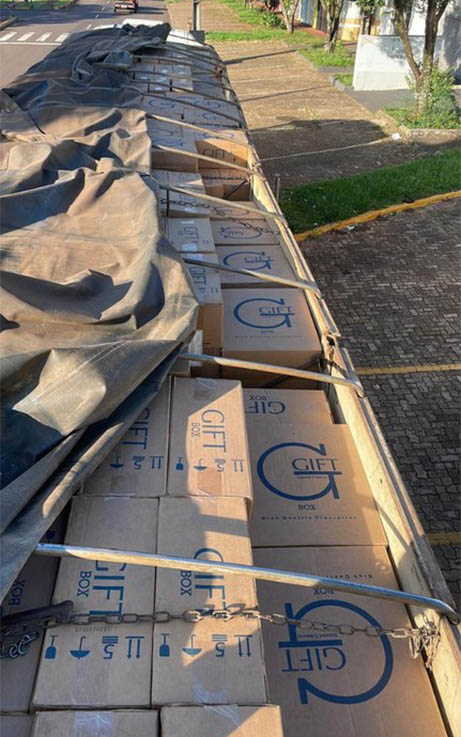 A ação se deu quando os policiais identificaram uma carreta trafegando pela rodovia. Diante de alguns sinais veiculares incompatíveis, resolveram realizar a abordagem para melhor verificação da carga. Após sinais sonoros e luminosos de parada, foi possível realizar a abordagem e constatou-se que a carreta estava carregada de caixas de cigarros contrabandeados do Paraguai.
