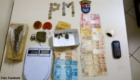 Durante busca na residência foram encontradas algumas pontas de cigarros de maconha em cima da mesa e na pia da cozinha. Um dichavador foi localizado em um armário e aproximadamente duas gramas de substancia análoga a maconha estavam dentro do congelador da geladeira. Dentro de um guarda-roupa os policiais localizaram R$ 480,05 em espécie.