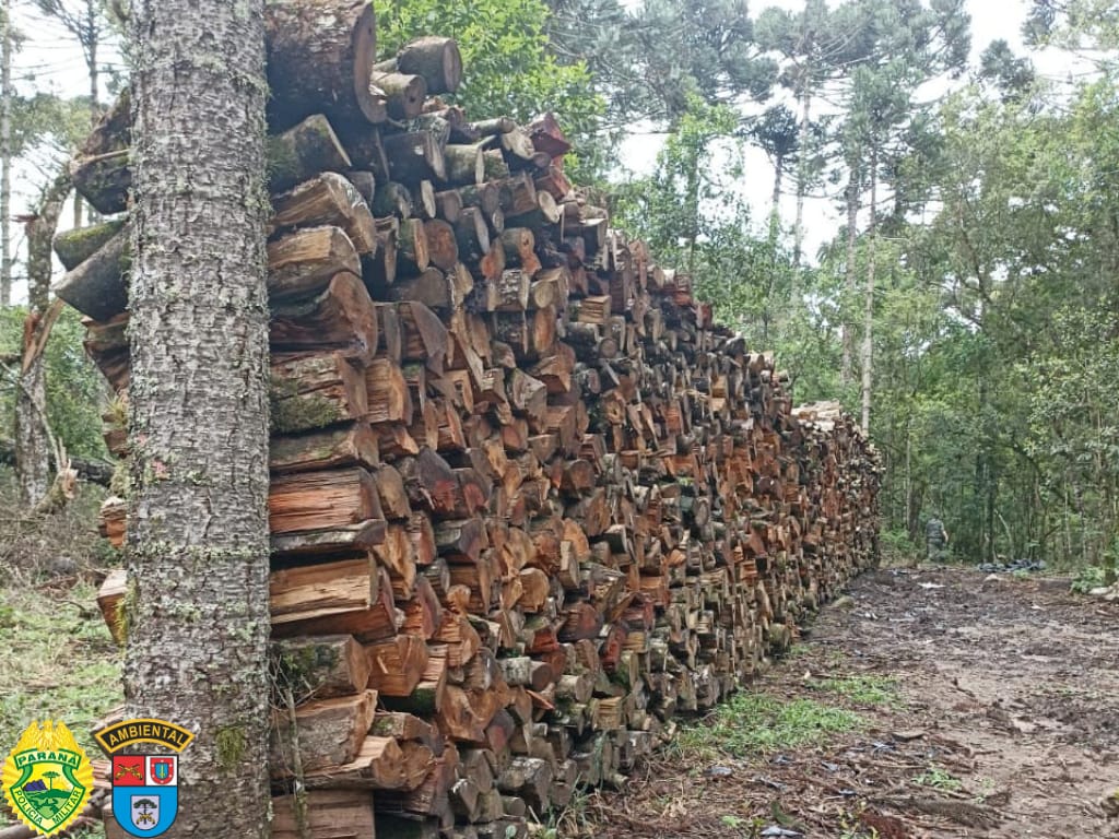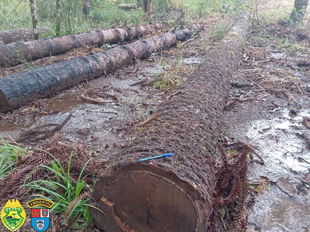 Adicionalmente, a equipe constatou a presença de 12 toras de Pinheiro Araucária na proximidade da área desmatada. Após cubagem, o volume total foi estimado em 8,37 m³. Além disso, uma pilha de lenha nativa, proveniente da área desflorestada, foi mensurada, totalizando um volume de 46,3 m³.