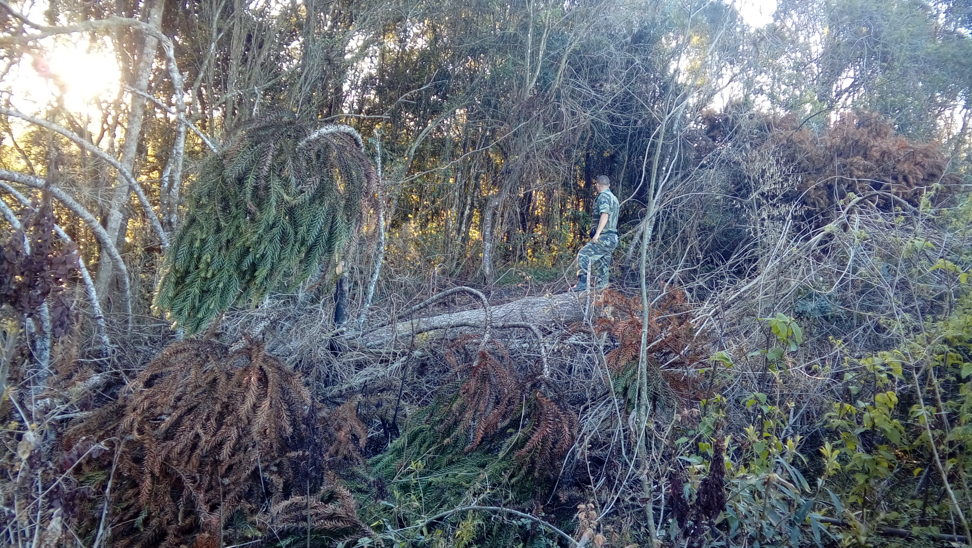 Polícia Ambiental constata corte pinheiros araucária na localidade de Volta Grande