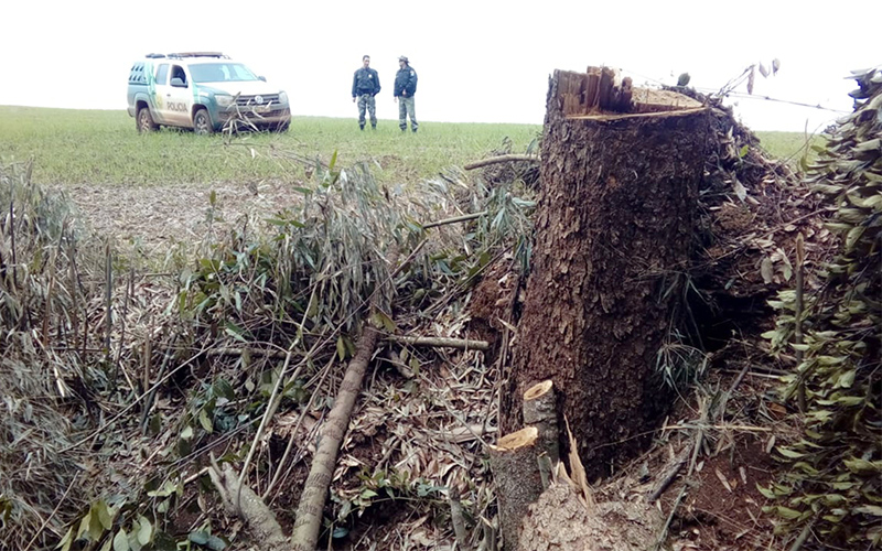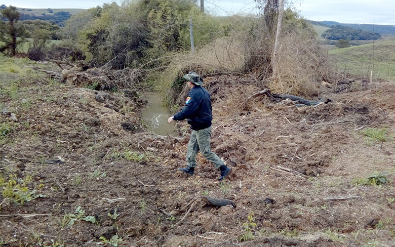 A equipe da Polícia Ambiental esteve na quinta-feira (14) em Palmeira, em atendimento a três denúncias. Na localidade do Boqueirão, foi constatado um dano em área de preservação permanente (nascente), mediante a derrubada de árvores nativas, contendo espécies como, branquilho e gabirobeira, para a reforma de duas barragens, uma com área de 0,096 ha e outra com área de 0,0140 ha. Ninguém foi encontrado no local e ao identificar o proprietário, este informou não possuir autorização do órgão ambiental competente, motivo pelo qual será comunicado o IAP de Ponta Grossa e a Delegacia de Polícia Civil de Palmeira para medida cabível nas esferas penal e administrativa.