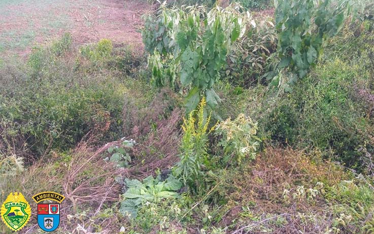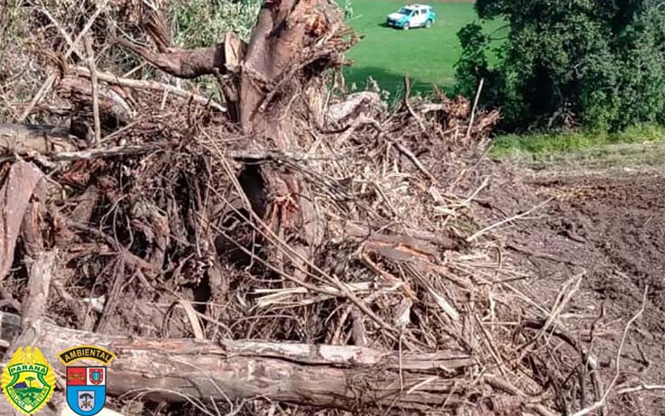No mesmo dia, a equipe policial recebeu uma ligação telefônica relatando desmatamento em andamento na localidade de Faxinal do Silva, também no município de Palmeira.