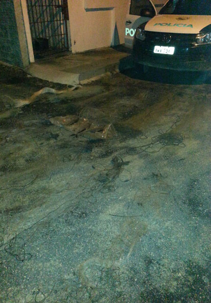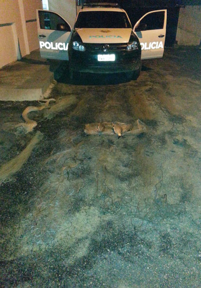 Os policiais realizaram patrulhamento aquático e encontraram nove redes armadas, e outras quatro redes e uma tarrafa foram encontradas próximo ao local da abordagem, totalizando 226 metros de redes.