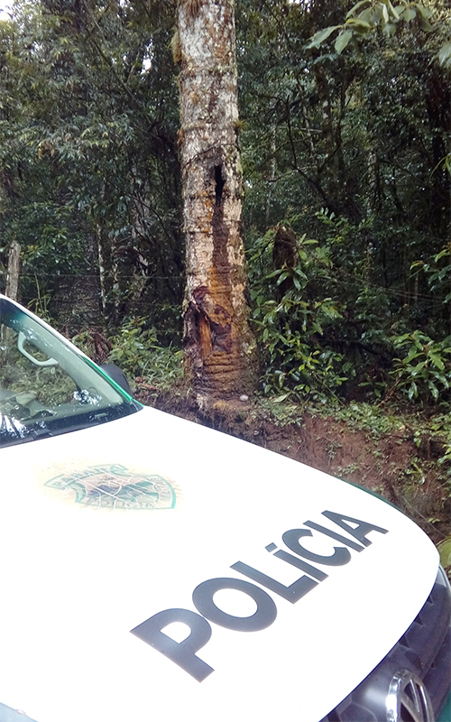 A equipe da Polícia Ambiental esteve na segunda-feira (29) em Palmeira para realizar fiscalização sobre três denúncias. Na primeira ocorrência, às 9 horas a denúncia, a equipe esteve na localidade de Benfica, onde verificou as margens da via rural a existência de um pinheiro araucária com dano no tronco com retirada de parte da casca ocorrido há certo tempo, e que já está apresentando cicatrização. Não sendo possível afirmar quem seria o responsável por tal ato. Em contato com o solicitante, foi orientado sobre a legislação ambiental.