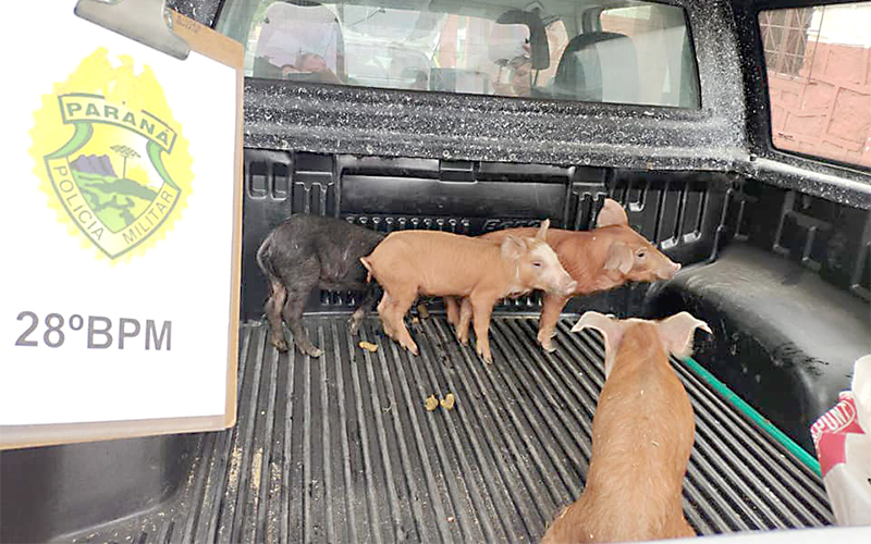 Um homem foi até a Delegacia de Polícia Civil para informar que seu filho de 17 anos havia chegado em casa durante a madrugada e ao amanhecer localizou dentro de uma caixa d’água desativada, dois leitões que não pertenciam à família. De acordo com o pai, por saber que seu filho é usuário de droga, ele desconfiou que os animais fossem produtos de furto.