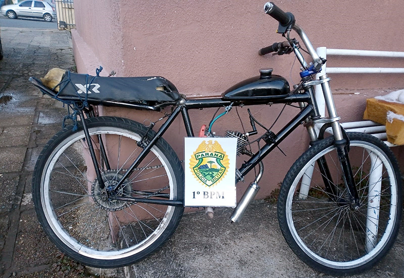 Em patrulhamento próximo a um posto de combustíveis na PR-151, a equipe avistou um indivíduo conduzindo uma bicicleta motorizada na cor preta com rodas brancas, este que já é conhecido pelas equipes policiais por realizar várias manobras perigosas em via pública, sendo em datas anteriores. Já no domingo (14), ao avistar a viatura policial o condutor da bicicleta motorizada se evadiu sentido centro da cidade, e a equipe policial realizou o acompanhamento tático, e segundo a PM ele furou a preferencial em várias ruas, quando na Rua Laertes Turra, ainda na tentativa da fuga ele realizou uma manobra brusca e caiu, sofrendo escoriações nos braços e pernas. Os policiais realizaram busca pessoal no abordado e nada de ilícito foi encontrado com o ciclista de 15 anos de idade, que foi identificado e em seguida, devido ao abordado ter sofrido escoriações, o mesmo foi encaminhado até a Santa Casa de Palmeira, onde foi atendido e medicado. Em seguida, o ciclista foi conduzido até a sede da 2ª Cia da Polícia Militar para os procedimentos cabíveis, e após ele foi liberado aos seus responsáveis. A bicicleta que é de fabricação artesanal e com motor adaptado, foi apreendida e recolhida ao pátio da companhia.